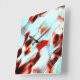 Impresso com textura áspera e manchas cianas acastanhadas a vermelhas e esbranquiçadas.