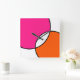 Relógio Quadrado Círculos Brancos Cor-de-Rosa Quente