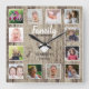 Relógio Quadrado Citação da Família de Colagem de Fotos em Madeira