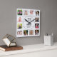Relógio de fotos russo com a inspiradora citação da família "O tempo passado com a família vale a cada segundo". Personalize com 12 fotos da sua família favorita.