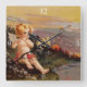Relógio Quadrado Clapsaddle: Querubim pequeno com flauta e pássaros