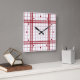 Relógio Quadrado Classic Dark Red Farmhouse Plaid Pattern On White