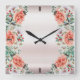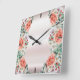 Relógio Quadrado Clock de Parede de Flor de Peony Aquarela