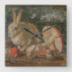 Um mosaico antigo de um coelho com cogumelos. Um belo animal florestal e uma imagem de planta.