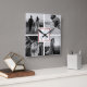 Relógio Quadrado Colagem de Fotos de Casamento Amor Preto e Branco