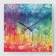 Relógio Quadrado Coloração d'água do arco-íris pintada Abstrato
