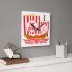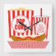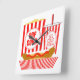 Este relógio de parede quadrado apresenta um saco de pipoca, um cachorro quente e uma xícara de refrigerante!