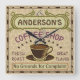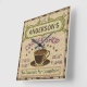 Este relógio de parede quadrado com tema de café é perfeito para qualquer um que comanda seu próprio compro de café ou tem um tema de café na decoração da cozinha da sua casa. Feito em castanho, verde, roxo e pistas de laranja, este design de inspiração/espresso apresenta uma xícara em um disco, duas banners de texto personalizados e as palavras "Compro de café / Rosto fresco / Sabor de Excelente" em roxo. A caneca está a vapor e a faixa de cima tem espirais que imitam a fumaça. Tudo repousa sobre um fundo leve de café-feijão. Os longos traços no quadrado externo marcam o tempo. Use as modelos para adicionar seu nome facilmente. Você também pode mudar o slogan inferior se quiser, que atualmente lê, "Sem Motivos para Reclamação." Se precisar redimensionar o texto para o ajustado, clique em "Personalizar." Pegue uma xícara de Joe e veja o tempo passar no seu relógio pessoal de café.
