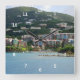 A cor das ilhas é aparente como você perto de St Thomas do mar. A atmosfera tropical da ilha de Virgin dos E.U. é imediatamente aparente, mesmo nas matiz das construções no beira-rio deste paraíso do cruzeiro e das férias.