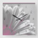 O relógio quadrado cor-de-rosa brilhante é uma adição brilhante à decoração do seu quarto, escritório, apartamento ou dormitório. Um bonito relógio de flores faz uma ideia de presente única para um amante de flores, jardineiro ou florista. Este relógio botânico contemporâneo apresenta uma fotografia floral, preta e branca, digitalmente melhorada, de uma flor margarida com uma tonalidade rosa.