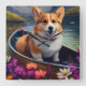 Relógio Quadrado Corgi em um remo: Uma aventura cênica