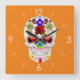 Este é um lindo relógio de parede quadrada cor de laranja. Crânio de Açúcar do Dia das Bruxas - Relógio de Arte da Tatuagem. É uma adição perfeita para a sua cozinha, banheiro, quarto, sala de estar ou negócio.
