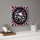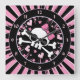 Crânio bonito e ossos cruzados cercados por corações e estrelas com bastante cor-de-rosa. As senhoras vão adorar este crânio feminino!