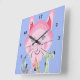Relógio Quadrado Crianças Relógios com Gato Rosa Gelado