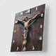 Relógio Quadrado Crucificação de Jesus na Cruz de Madeira