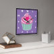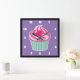 Arte gráfica / ilustração de um cupcake cor-de-rosa brilhante com espirais de gelo em cima e uma cereja bolinhas rosa-quente e giro. A base é verde e listras brancas.