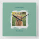 Featuring a vibrant mint green background and the unique white brushstroke frame, this clock easily matches your modern home décor. It makes an incredible personalized gift for pet owners!