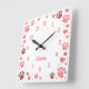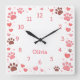 Relógio Quadrado Customizable Name Pet Paw Print Wall Clock