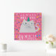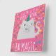 Cute, pink, cartoon cat unicorn with colorful stars girly wall clock with inspirational quote: Always believe in magic!
