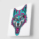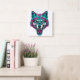 Relógio Quadrado Cyberpunk Neon Wolf - Synthwave Robotic Animal