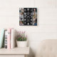Faça seu próprio relógio personalizado de colagem de fotos com este modelo fácil. Este relógio quadrado, clássico, tem números brancos alinhados no meio em um retângulo longo estilo deco e um fundo preto comum que você pode "personalizar" para qualquer imagem ou cor que você queira. Ao longo das bordas, há espaço para você adicionar oito de suas próprias fotografias quadradas favoritas. Simplesmente mude as modelos para as suas próprias fotos. Você também pode adicionar texto personalizado ao meio ou excluir os campos de texto de exemplo. Use a ferramenta design para alterar as fontes ou a localização do texto. Este relógio de colagem de fotos é uma bela maneira de mostrar memórias de família ou casamento.