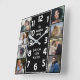 Relógio Quadrado Deco de Arte Branca e Preta de Colagem de Fotos da