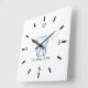 This sleek and modern wall clock is designed specifically for dental offices, featuring a prominent tooth graphic at its center. The clean white square face with minimalist black hour markers ensures easy readability. Personalized with the name "Tod Miller, D.D.S.," it adds a professional and welcoming touch to any dental clinic or office space.