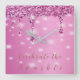 Relógio Quadrado Derrame de brilho rosa-quente elegante