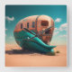 A desert monster house in the shape of a house, in the style of surreal seascapes, photorealistic renderings, light aquamarine and beige, playful character designs