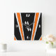 Relógio Quadrado Design de Deco De Arte Negra E Laranja Monograma