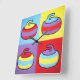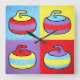 Uma celebração lúdica de cor, textura e repetição, este design apresenta um quarteto de pedras de curling estilizadas renderizadas em um estilo pop-art ousado e pictórico. Cada pedra está dentro de seu próprio campo de cor vibrante, trocando tons e combinações para criar uma variação visual rítmica que se sente ao mesmo tempo coesa e dinâmica. Os contornos grossos e desenhados à mão e as texturas visíveis como pinceladas dão às formas uma sensação tátil e uma calidez quase de arte popular, enquanto as formas simplificadas e a paleta de alto contraste conferem um impacto gráfico moderno. O resultado é uma composição animada e caprichosa que captura o espírito do curling através de uma lente de abstração alegre e cor expressiva.