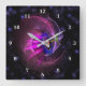 Relógio Quadrado Design Nebula com Óculos Estrelas e Flor