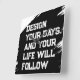 Este relógio único e de alta qualidade é mais do que uma forma de dizer o tempo; é um belo e gentil lembrete de fazer cada momento contar. Apresentando nosso logotipo icônico, este relógio serve como âncora visual diária para uma vida de intenção. A design sem tiques permite uma atmosfera pacífica e consciente, permitindo que você se concentre em viver no momento, aprender e criar. O design vibrante é impresso com o processo AcryliPrint®HD no acrílico Grau A, garantindo cores e qualidade impressionantes que durarão anos. Com uma ranhura pré-instalada de trás para a frente, está pronta para trazer propósito a qualquer sala no momento em que chega.