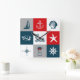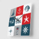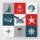 Design temático náutico com marinho e a decoração aquática em quadrados brancos, vermelhos, azuis e cinzentos sem emenda