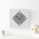 Um moderno design de relógio geométrico adiciona um toque moderno à decoração da cozinha, sala de jantar ou quarto de estilo. Projetado como um design moderno em preto, cinza e branco.