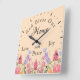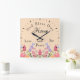Relógio Quadrado Deus abençoe Nosso Beige De Flores Selvagens Flora