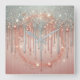 Relógio Quadrado Dica de brilho rosa embutido e prateado