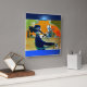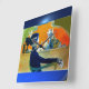 Design elegante, elegante e colorido... reelaborada da vintage Art Nouveau... mostra uma senhora sofisticada, sentada na cadeira admirando os altos-fornos. Os azuis, os verdes, as laranjas e amarelos, trabalhando juntos para criar harmonia e um belo contraste.