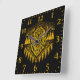 Relógio Quadrado Dourada Cabeça de Bison com Montanhas e Árvores