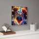Dois modelos de cabelos vermelhos com maquiagem impressionante se enfrentam, cercados por padrões de energia vibrantes e luzes coloridas, criando uma atmosfera encantadora.