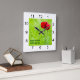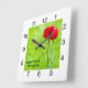 Duas tulipas vermelhas contra o fundo verde e algumas flores silvestres amarelas. Relógio de parede quadrado. Você pode alterar ou excluir o texto modelo. Divirta-se!