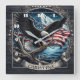 Relógio Quadrado Eagle Sofrendo Sobre Montanhas Com Bandeira Americ