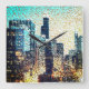 Relógio Quadrado Edifícios da cidade azul em mosaico com alivio