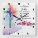 Este inspirador relógio de parede quadrada apresenta uma cruz de aquarela vibrante, misturando tons de azul, rosa e roxo. Ao lado dela, a poderosa mensagem "Eles sussurravam para ela Você não pode suportar a tempestade que ela sussurrou. Eu sou a tempestade." é exibido elegantemente, criando uma ousada declaração de força e resiliência.