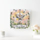 Este inspirador relógio de parede quadrado apresenta uma cruz de madeira enrolado com um pano branco, colocado contra um sol radiante e rodeado por lírios brancos vibrantes e delicadas borboletas azuis. Uma faixa com "Ele é Risen" em uma escrita elegante completa essa descrição serena e esperançosa de Páscoa e ressurreição.