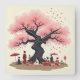 Bring the serenity of Japanese spring into your home with this elegant wall clock, featuring a beautiful scene of blooming cherry blossoms. The delicate pink flowers bloom on gracefully arching branches, while traditional Japanese figures in kimonos and yukatas enjoy peaceful moments beneath the tree. Some admire the blossoms, others partake in a tranquil tea ceremony, surrounded by elements like paper lanterns, parasols, and tatami mats. Rendered in soft pastels with intricate detailing, this clock captures the peaceful essence of hanami (flower viewing) season, perfect for those who appreciate the beauty of Japanese culture and nature.