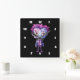 Um relógio com uma bela ilustração. Monstro de Frankenstein com cabelo rosa e roxo e um terno e gravata.