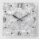 Relógio Quadrado Esboço Rustic Black White Forest Raposa Animal Coe