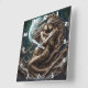 Relógio Quadrado Esqueletos Românticos Embarcando Sob uma Lua Compl