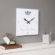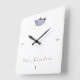 Escolha entre estilos redondos ou quadrados deste relógio lindo e elegante com detalhes bonito e imagem de coroa juntamente com texto para personalizar com nome ou título de paginação. Apenas a coroa azul e branca.